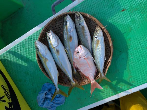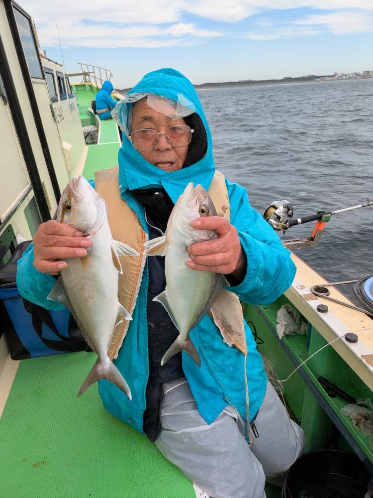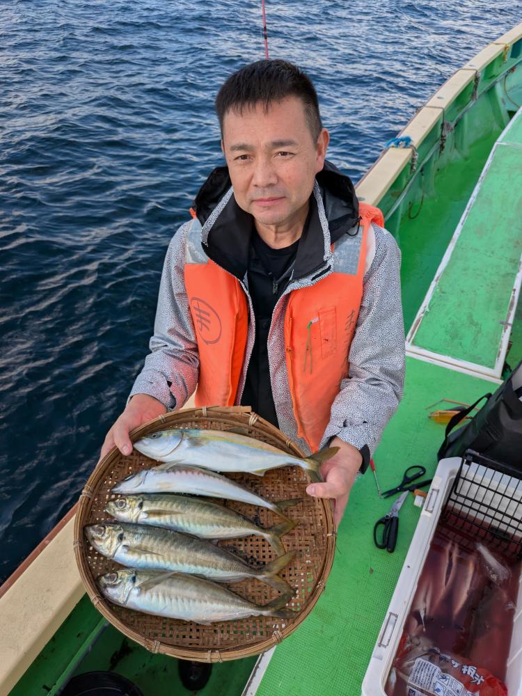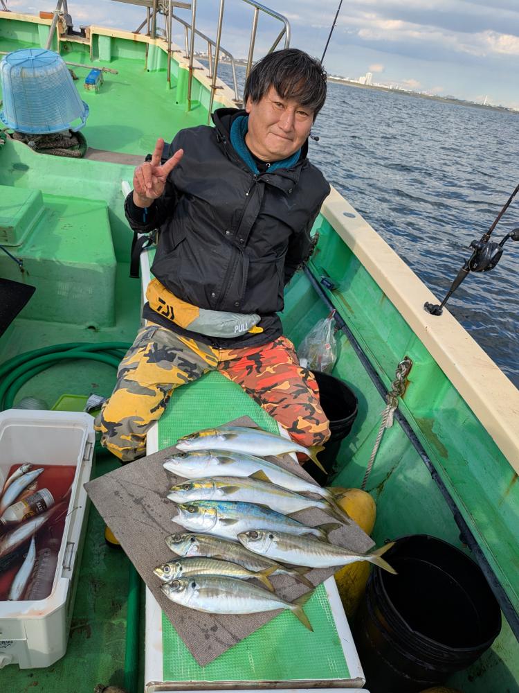 今日のビシアジ船/今日は朝から茅ケ崎沖をやりましたが前回のような反応はありませんでしたが、反応が船の下に出て来ればアタって来ていましたがタイミングが悪いとアタリが出ないお客様もいましたがダブルで釣れて来る事もありました。