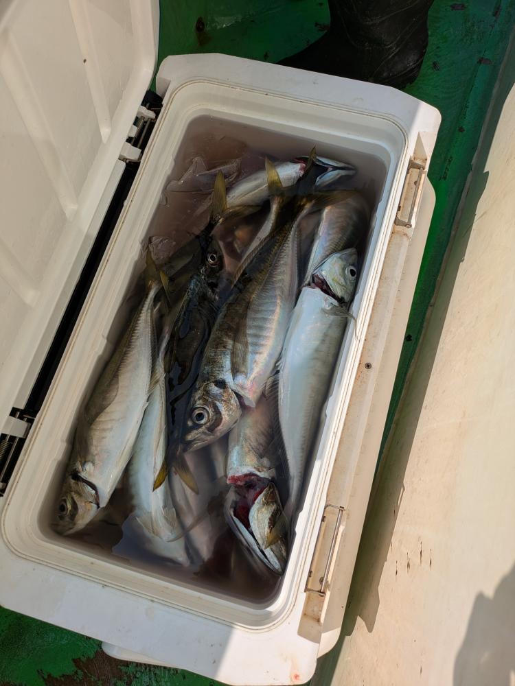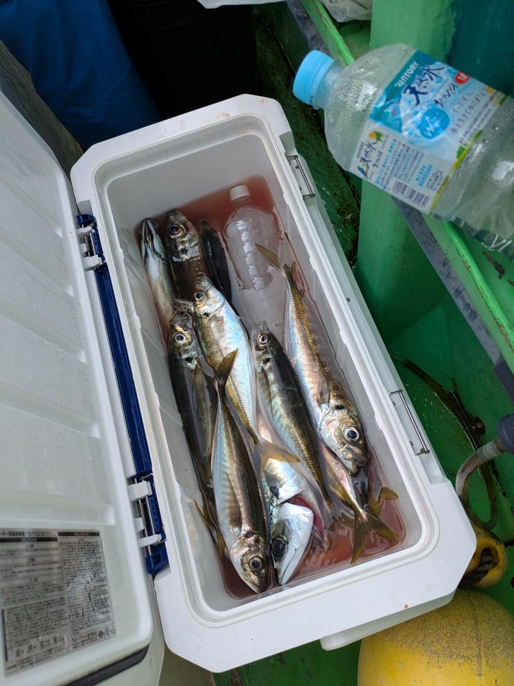 アジは、小アジと中アジ〜デカアジが主体でしたが、今日は少し深場をやりましたがポツポツと釣れましたが付けエサの青イソメがあればもっと喰いが良かったと思いますよ。