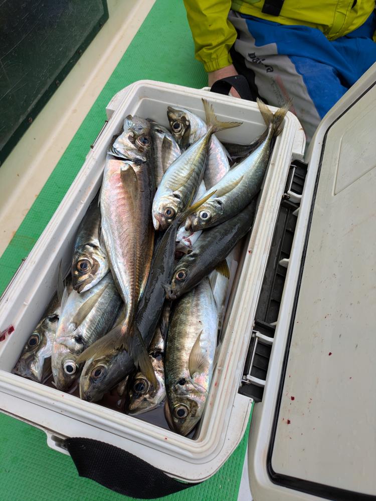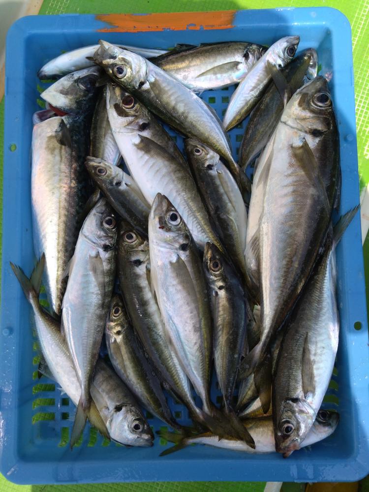 アジ主体で、サバ・マダイ・がまじりました。
