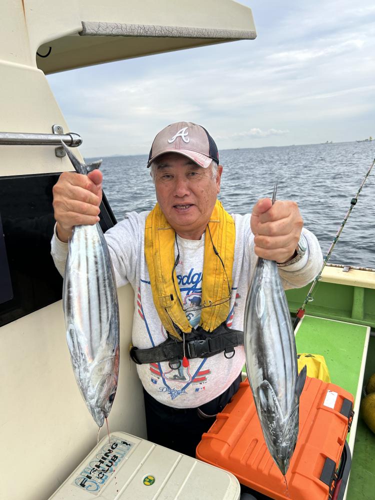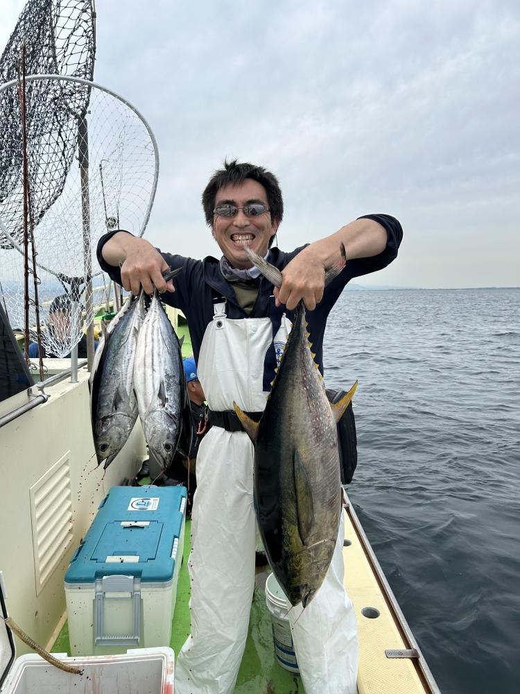 本日も前半カツオ狙いボチボチ当たりあり皆さんゲットできました!早めにマグロ狙いに切り替えたら、祭りの始まりでしたよ!ヒット9回7本GETでーす!他18.7、22.4、24.9、25.5、25.7、26.0、45.4㎏!明日の祭りに期待しましょう!探検丸、搭載しました!使う方は声をかけて下さい!電動リールのバッテリーは必ず持参して下さいね!