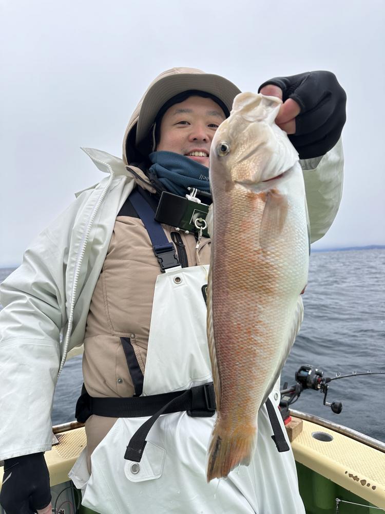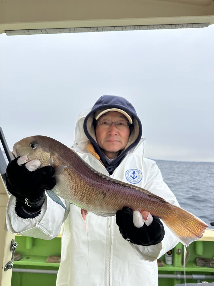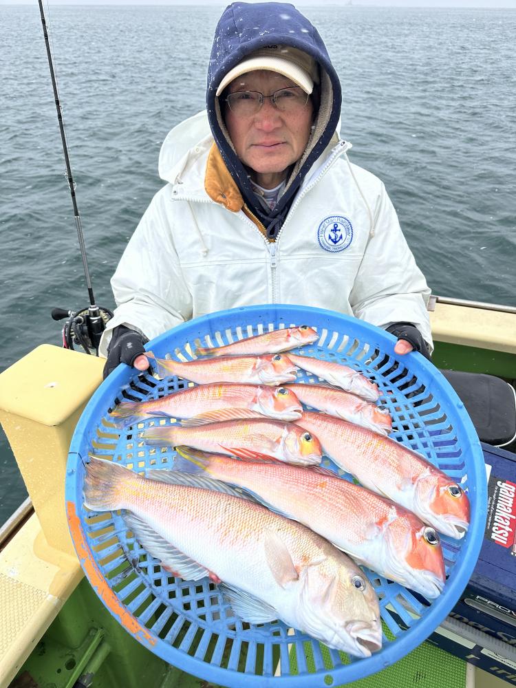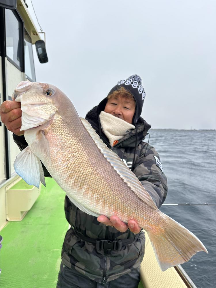 今日は朝イチのシロアマ狙いでデカシロ55㎝、良型44.5㎝、44㎝GETできました。アカアマ狙いは浅場から深場まで顔は見れました。アカアマはなかなかサイズアップできず。8名でトップ9匹、5匹が2名、4匹、寒い中最後まで頑張って頂きましたが1名顔見れずでした。仕掛けは多めに持ってきてください。